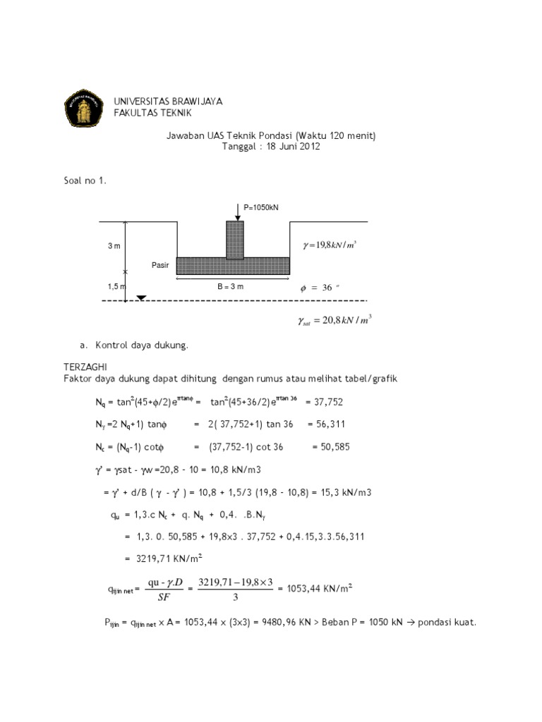 Beban terbagi rata di atas permukaan (qo) sebesar 20 kn/m. D apa yang jawaban pembebanan keamanan kepadatan f o dr relatif tanah pdf free download. Rekayasa pondasi 1 pondasi dangkal pdf download gratis. Materi mata kuliah rekayasa pondasi untuk sub bab perhitungan daya dukung pondasi dangkal menggunakan teori meyerhof belajar dan bagikan! Hukum newton bunyi jenis penerapan contoh soal.