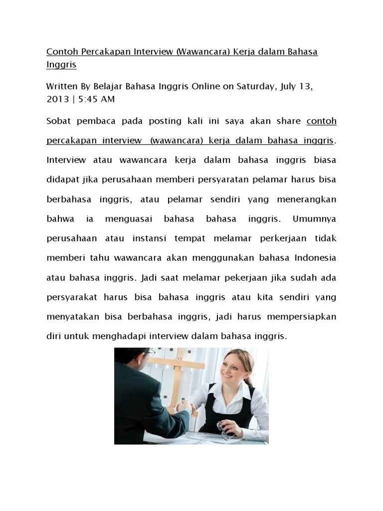 Contoh Interview Bahasa Inggris Singkat : Contoh Dialog Bahasa Inggris Interview Rasmi G / Dialog interview bahasa inggris dan artinya.